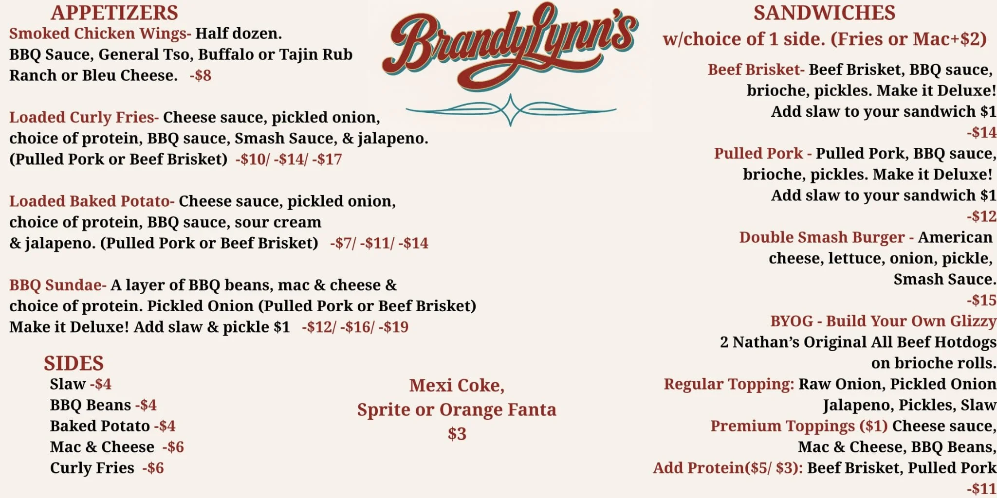 BrandyLynn’s BBQ Food Truck is southern Delaware’s go-to destination for authentic BBQ, served up fast. We serve slow-smoked brisket, pulled pork, ribs, smash burgers, and BBQ specialties made fresh on our rolling smokehouse. Every bite is packed with bold flavors, tender meats, and mouthwatering sides that keep locals and visitors coming back for more.
